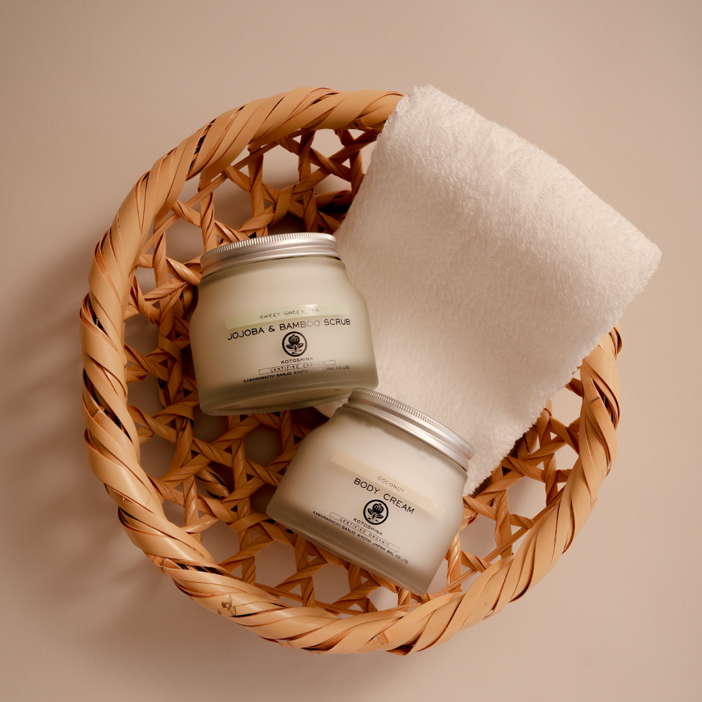 スクラブで肌をすっきりと整えたあと、ボディクリームを重ねることで、軽やかで心地よい仕上がりに。